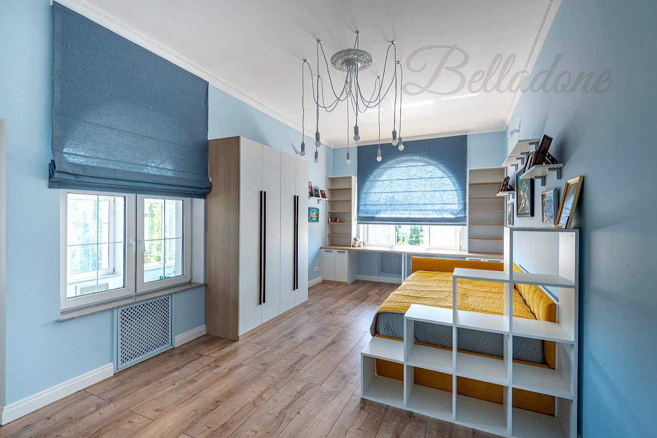 Ателье Belladone предлагает стильные современные решения для оформления окон в детской и любом другом помещении. В пакет услуг включен предварительный визит дизайнера, доставка, установка карнизов и навешивание штор. Мы сотрудничаем с производителями тканей и предлагаем PinUp выбор качественного текстиля.