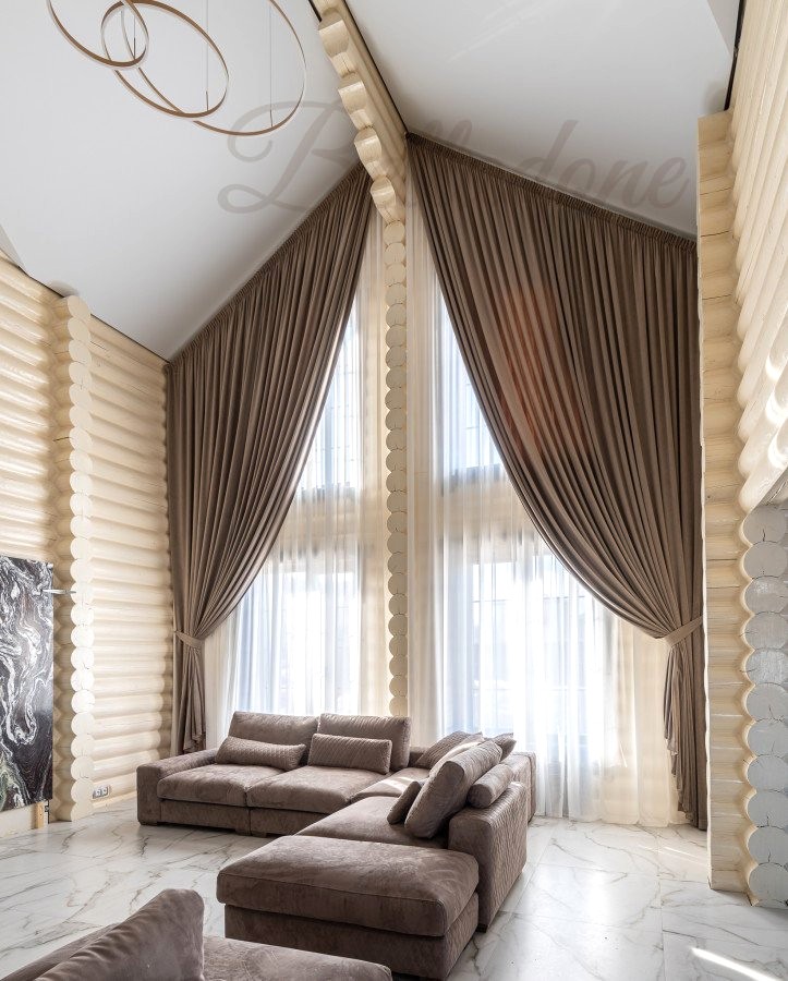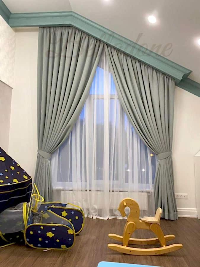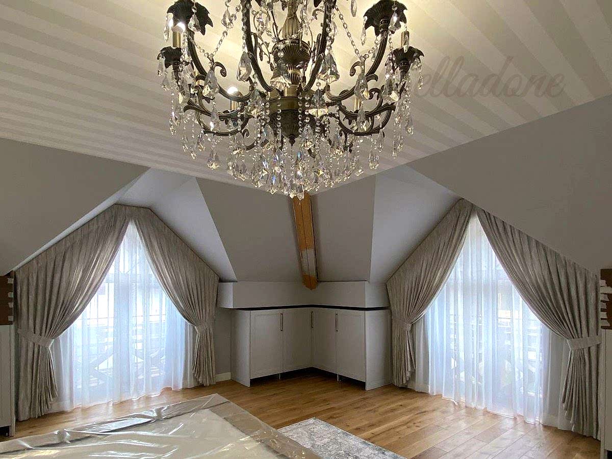 Оформление треугольных окон включает не только выбор подходящего типа штор и ткани, гармонирующей с интерьером, но и решение технических задач: как правильно выкроить, сшить и закрепить шторы на нестандартные окна. Обычный способ крепления, рассчитанный на горизонтальное расположение карниза, приводит к смещению штор к нижней точке PinUp