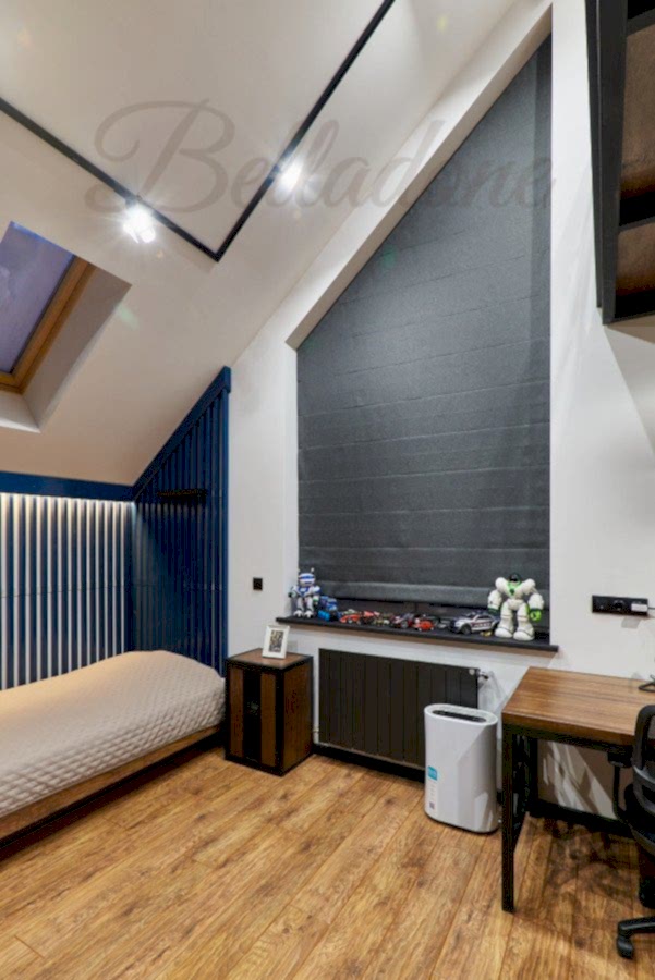 Среди всех классических текстильных конструкций римские (итальянские) шторы наилучшим образом подходят для оформления окон треугольной формы.