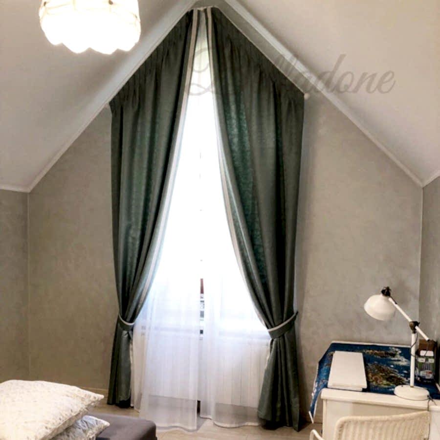 Приобрести готовые шторы для таких окон в магазине или салоне - задача не из простых. В отличие от стандартных прямоугольных окон, большинство из которых имеют унифицированные PinUp треугольные окна практически всегда уникальны по форме и габаритам. Оформление треугольного оконного проема доступно только через услуги специализированных ателье. Самостоятельный пошив штор для треугольных окон - занятие рискованное, поскольку ошибка в расчетах грозит испортить ткань и испортить конечный результат.